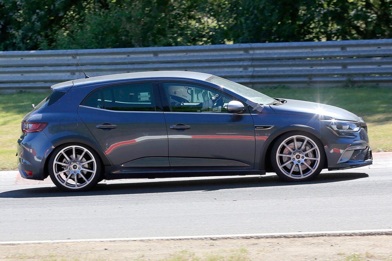 En attendant et depuis que la Mégane GT servant de mulet à la version R.S. a été aperçue sur le Nürburgring pour la première fois, tous les chasseurs de scoops sont allé débusquer la future détentrice du record des tractions sur la boucle nord. Certaines de ses nouvelles photos laissent assez sensiblement apparaître le système 4 Control à 4 roues directrices.