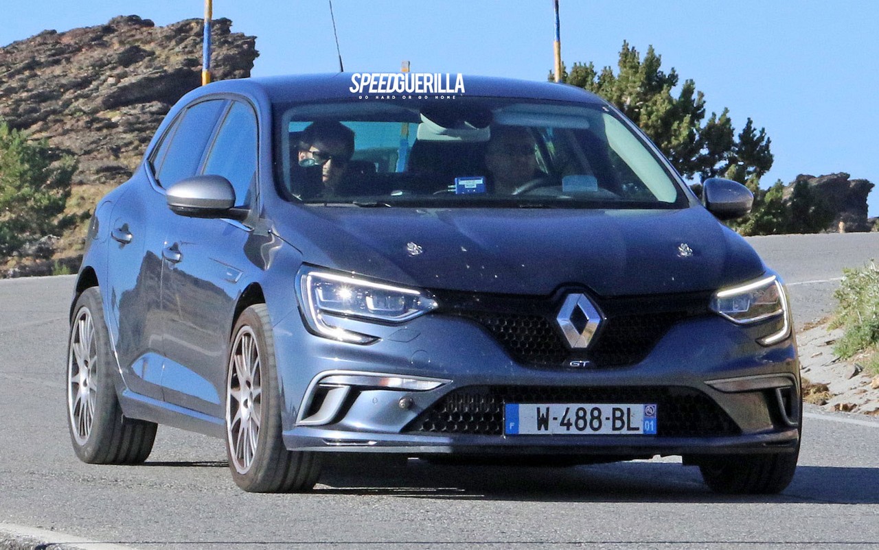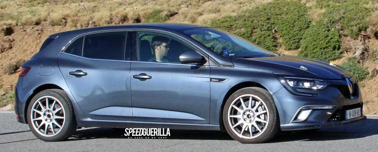 La voiture est une Mégane 4 GT gris titanium (ou bleu berlin ?), aux ailes avant et arrière ayant subies une découpe "sauvage", certainement signe de voies élargies, ce qui laisse donc présager une version R.S. finale, soit avec des extenseurs d'ailes comme la Mégane 3, soit avec des ailes spécifiques comme sur la Clio 3 RS.